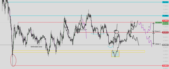 Meanwhile, jika Bitcoin berhasil menembus US$ 72.000 dengan kuat. Maka target berikutnya berada di kisaran US$ 74.000, bahkan berpotensi melanjutkan kenaikan ke area US$ 78.000 hingga 82.000.